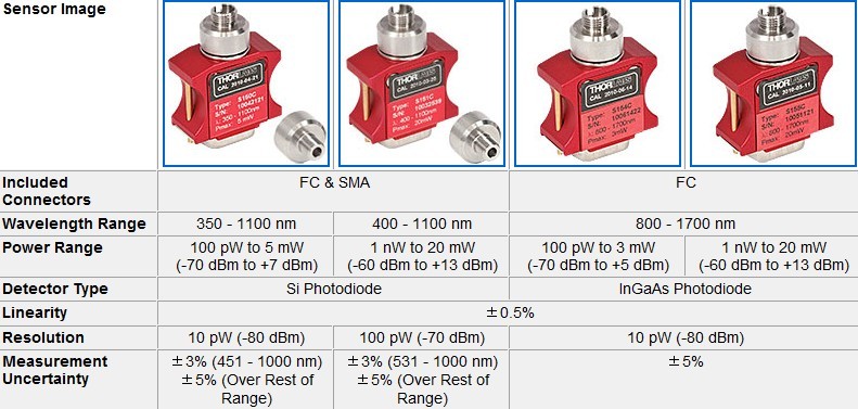 M520 幾乎與所有的功率和能量探頭相兼容(光電探頭,熱敏探頭,熱釋電探頭),應(yīng)用于從紫外到中紅外波段的檢測(cè)。它將光電探頭(超薄型, 積分球型, 光纖型)輸出電流從10 pA到5 mA間劃分了6個(gè)量程,對(duì)熱敏探頭的熱電電壓從100 nV到1 V劃分為4個(gè)量程,兩者都可自動(dòng)或手動(dòng)設(shè)置。表頭對(duì)熱釋電探頭的電壓從100 μV 到100V有4個(gè)手動(dòng)可調(diào)量程,觸發(fā)電平可調(diào)節(jié),范圍從0.1%到99.9%。 用戶可以使用定制的探頭,并上傳一個(gè)響應(yīng)曲線來(lái)進(jìn)行光譜響應(yīng)校正。此外該表頭還配有一個(gè)USB2.0接口可用于遠(yuǎn)程連接控制。以下概述了所有兼容的探頭和適配器。