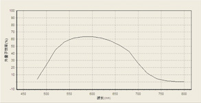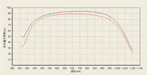實(shí)測(cè)染料敏化電池量子效率曲線       實(shí)測(cè)染料敏化電池光譜響應(yīng)曲線
