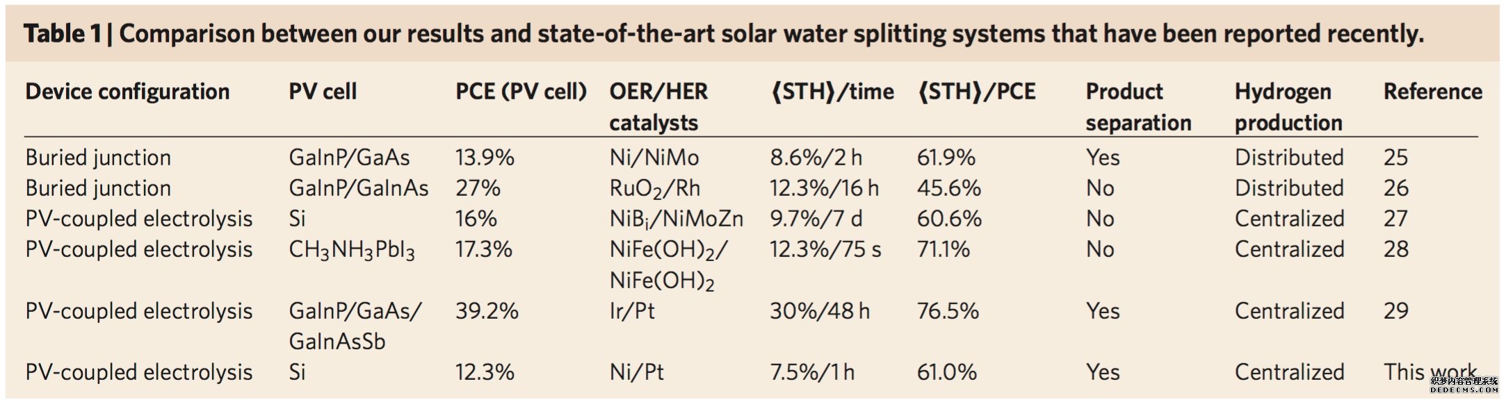 太陽(yáng)能產(chǎn)氫一直是人類(lèi)孜孜追求的目標(biāo)。但如何實(shí)現(xiàn)大規(guī)模持續(xù)、廉價(jià)產(chǎn)氫是為棘手又亟待解決的問(wèn)題。在傳統(tǒng)電解槽結(jié)構(gòu)中,產(chǎn)氫和產(chǎn)氧在同一槽中。但這一方式在光電產(chǎn)氫領(lǐng)域受到了大的限制。如何整合太陽(yáng)能的轉(zhuǎn)化與電解水產(chǎn)氫成為關(guān)鍵。本文中,作者通過(guò)分離產(chǎn)氫、產(chǎn)氧過(guò)程,并利用輔助電作為“調(diào)節(jié)劑”,成功實(shí)現(xiàn)大面積太陽(yáng)能轉(zhuǎn)化與集中式產(chǎn)氫,太陽(yáng)能產(chǎn)氫轉(zhuǎn)換效率達(dá)到7.5 %。同時(shí),較之傳統(tǒng)光電化學(xué)體系,該方法在成本、安全性以及穩(wěn)定性上都具有一定的競(jìng)爭(zhēng)優(yōu)勢(shì)。