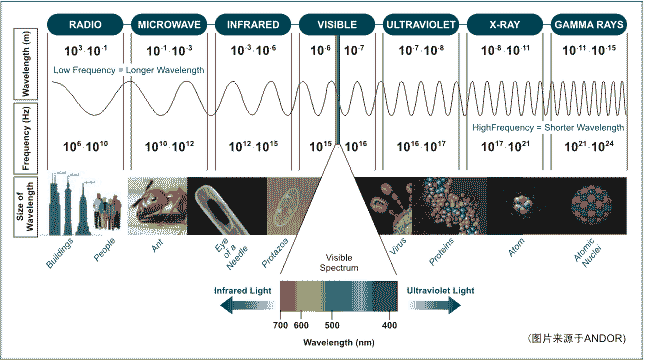 各種光源涵蓋的波長(zhǎng)范圍如下圖所示: