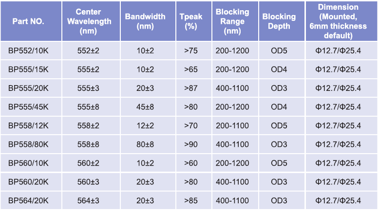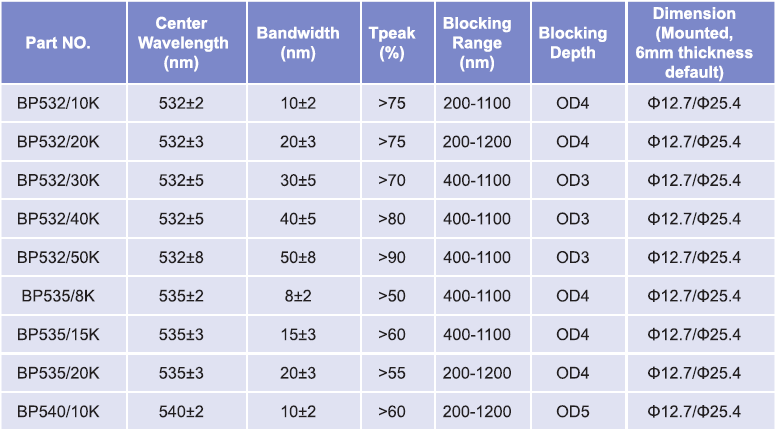 、庫存:上萬種標準及非標準帶通濾光片產(chǎn)品現(xiàn)貨供應
