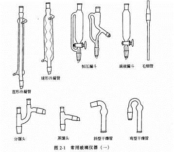 在精細(xì)有機(jī)合成實(shí)驗(yàn)中使用的一般為標(biāo)準(zhǔn)磨口玻璃儀器。它的用途、容量不同,應(yīng)注意標(biāo)準(zhǔn)磨口有不同的編號,如 10 號、 14 號、 19 號、 24 號、 9 號和 34 號等。這些編號是指磨口大端的直徑 ( 單位為 mm ,取接近的整數(shù) ) 。洗滌磨口時不得用粗糙的去污粉,以免使磨口擦傷而漏氣。進(jìn)行真空減壓操作時,磨口處應(yīng)涂以真空潤滑脂,以免漏氣。一般用途可不涂潤滑脂,以免砧污反應(yīng)物或產(chǎn)物。若反應(yīng)中有強(qiáng)堿,則應(yīng)涂潤滑劑,以免磨口連接處因堿腐蝕粘牢而無法拆開。精細(xì)合成實(shí)驗(yàn)所需常用玻璃儀器見圖 2-1 。