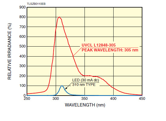 高亮度:約在紫外LED8倍(310nm